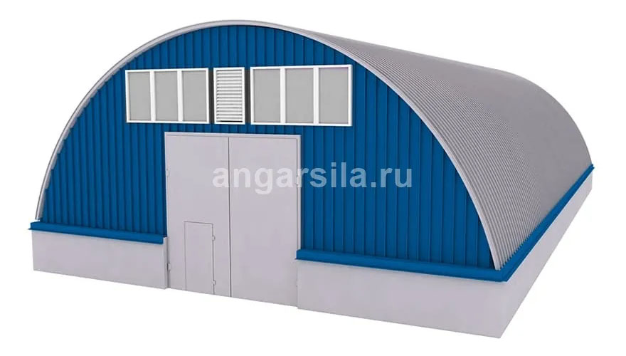 - Торцевые стены ангара изготавливаются из тех же материалов, что и основная конструкция. В них устанавливаются ворота, двери и окна (при необходимости).